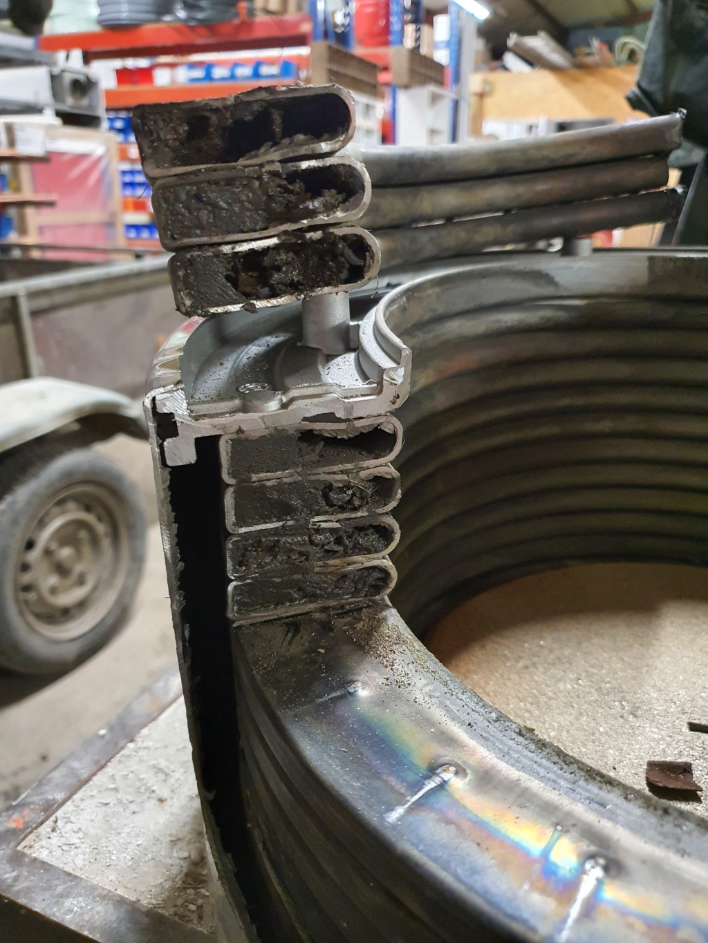 Voici pourquoi, chers clients, sur chacune de nos installations nous préconisons systématiquement un désembouage complet avant l'installation d'une nouvelle machine, et que chacune de nos installations contient un pot à boues + injection d'inhibiteur de corrosion !